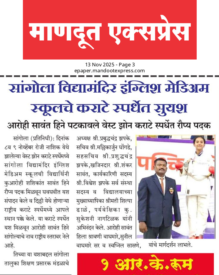 Sangola Vidyamandir English Medium School is a branch of S.T.S.P. Madal’s which is founded in the year 2005. The School building is three floored with spacious & well designed classrooms.