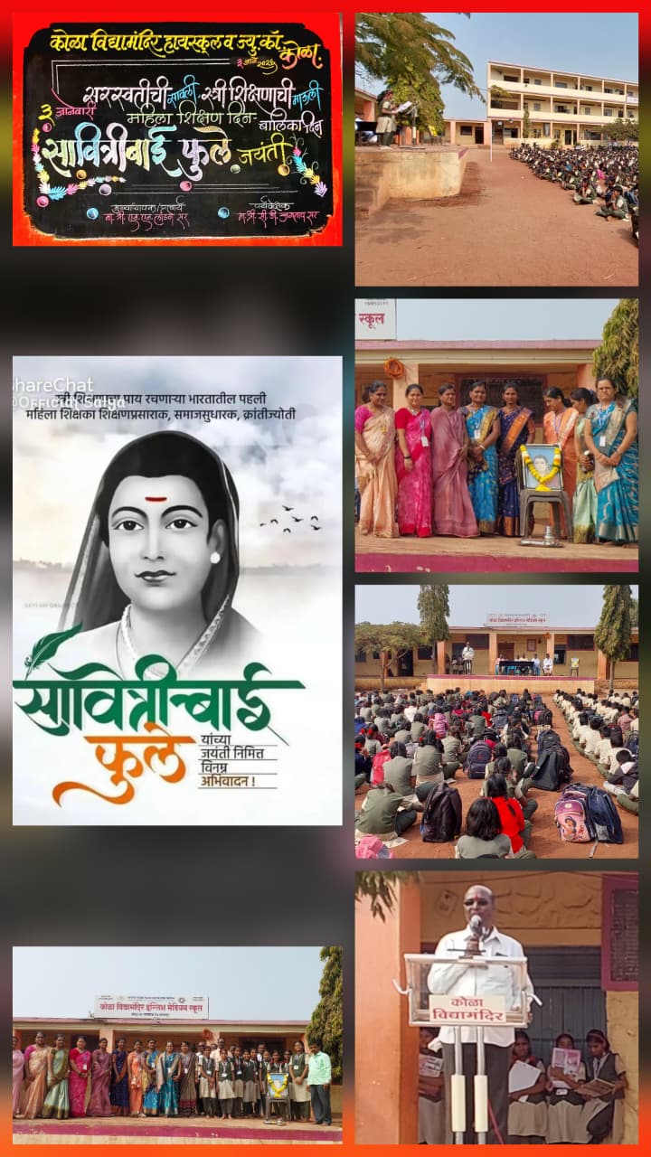 कोळा विद्यामंदिर हायस्कूल व कॉलेज व इंग्लिश मिडीयम स्कूल कोळा मध्ये क्रांतीज्योती सावित्रीबाई फुले जयंती साजरी करण्यात आली.तसेच राज्यस्तरीय स्पर्धेसाठी निवड झालेल्या एकलव्य सरगर व रियाज तांबोळी यांचा कोळा ग्रामस्थ व विद्यामंदिर यांच्या संयुक्त विद्यमाने सत्कार करण्यात आला.
